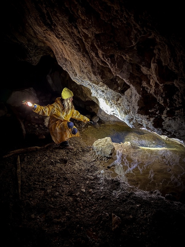 Рядом находится пещера «нижняя» в которой есть небольшое озерцо с рыбками, на стенах отпечатки рачков (раньше пещера видимо была гротом). Мышки зимуют